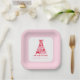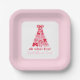 Modern Pink Red Tree Bow 1st Birthday Paper Plate