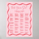 Help guests find their seats in style with this Modern Pink and Red Wavy Frame Wedding Seating Chart Poster. Featuring a pink background with a bold red wavy border, this chart displays your guest list alphabetically for simple navigation. At the top, “Find Your Seat” is written in elegant red script, with your names and wedding date shown just below. Available as a professional print or instant download, this seating chart poster is both functional and chic.