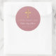 Modern Pink Religious Cross Girl Confirmation Classic Round Sticker