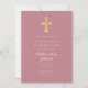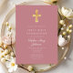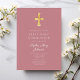 Modern Pink Religious Cross Girl First Communion Invitation.