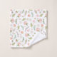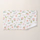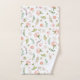 Beautiful pink rose bud floral pattern bathroom towel set on a neutral white background.