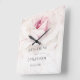 Modern Pink Rose Floral Bride Groom Names Wedding Square Wall Clock