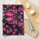 Modern Pink Scandinavian Floral Pattern Tea Towel