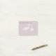 A pale pink post it note featuring a stork carrying a new baby bundle with space for your name and baby's too