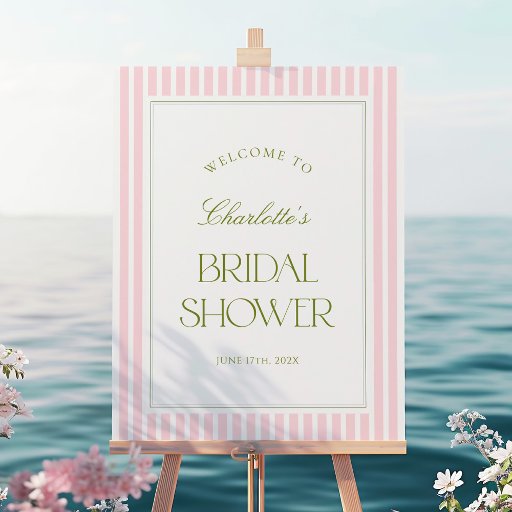 Pink & Sage Striped Bridal Shower Invitation