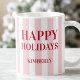 Modern Pink Striped Personalised Happy Holidays Coffee Mug