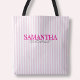 Modern Pink Striped Script Personalised Bridesmaid Tote Bag