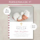 Personalised Modern Pink Stripes Religious Cross Photo Baptism Invitation.