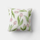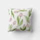 The product design features a pattern of pink tulip flowers. This original botanical illustration makes a modern chic and unique square outdoor pillow - Her birthday, Easter, Mother’s Day, or wedding gift idea.