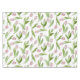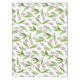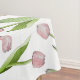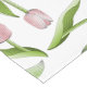 The product design features a pattern of pink tulip flowers. This botanical illustration makes a modern chic and unique tablecloth.