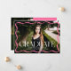 Celebrate your high school or college graduate with this chic and modern graduation announcement, featuring a full-bleed horizontal photo framed by a stylish pink wavy border. \"Graduate" is displayed in bold white lettering and makes a striking statement, while the graduate’s name, school, and class year add a personalised touch. The back includes a vertical photo with space for your custom message, making it the perfect way to share this milestone achievement with family and friends.