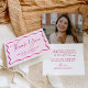 Show your appreciation with this modern pink frame graduation thank you card. Featuring "Thank You" in elegant handwritten pink script, this design is accented by a stylish pink wavy border against a light pink background. Customise the front with your name and graduation year for a personal touch. Inside, display your horizontal senior photo at the top, with your heartfelt message in bold pink lettering below. Perfect for high school and college graduates, this personalised thank you card adds a charming and memorable touch to your graduation gratitude.