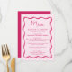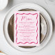 Add a vintage touch to your engagement party, rehearsal dinner, or wedding reception with this Modern Pink Wavy Frame wedding menu. The design displays the couple's names, wedding date, and menu options in bold pink lettering surrounded by a dark pink wavy frame border against a light pink background. The retro wedding menu coordinates with our Modern Wavy Frame wedding collection.
