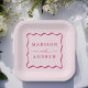 Modern Pink Wavy Frame Wedding Paper Plate