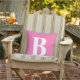 Modern Pink White Monogram Initial Patio Outdoor Cushion