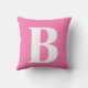 Customisable bold pink background on both sides of the pillow. Large chunky white monogram letter is on the centre. .