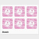 Modern Pink White Pattern Monogram Custom Square Sticker