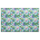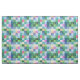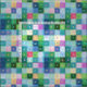 Modern pixel block colour quilt patches in shades of green, teal, yellow and pink