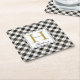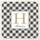 Modern Plaid Check Gold Accents, Monogrammed Square Paper Coaster