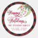 Modern plaid script Happy Holidays red holly Classic Round Sticker
