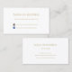 A modern and simple plain white business card with golden brown coloured writing that can be personalised by adding your social media websites like Facebook and Instagram.