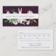 Modern elegant ivory white and dark plum purple flowers with lush green foliage adorned white salon scissors, logo style design, appointment cards. Text colour and font style can be customised. Professional design template with multiple lines for your information. Card features lines for appointment info., including name, day of the week check box, date and time.