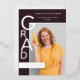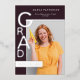 Designed to showcase your graduate’s photo and achievements, the layout balances strong graphic elements with clean typography, creating a refined statement that feels both confident and timeless. The plum noir tone offers a striking alternative to traditional graduation colors, making this design especially appealing for those drawn to modern, editorial-inspired aesthetics.
