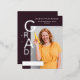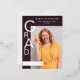 Designed to showcase your graduate’s photo and achievements, the layout balances strong graphic elements with clean typography, creating a refined statement that feels both confident and timeless. The plum noir tone offers a striking alternative to traditional graduation colors, making this design especially appealing for those drawn to modern, editorial-inspired aesthetics.