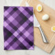 A kitchen towel featuring a beautiful diagonal plaid pattern design in plum purple.