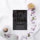 Modern and minimalist engagement party invitations feature chic black and white styling with "pop fizz clink" in oversized rose gold foil retro lettering. Personalise with your engagement celebration details beneath. Invitations reverse to a pattern of colourful stars.