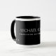 A modern and black coffee-mug personalised with your own name and profession or business name