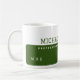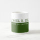A modern half-white and half-green coffee-mug personalised with your own name and profession or business