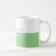 Nice sage (editable colour) and white coffee-mug personalised with name and profession (business administration)