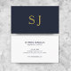 A clean and simple business card design with a solid navy blue background on the front with modern gold typography for your initials. The back of the card is plain white with simple navy blue typography which you can easily personalise.