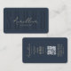 Modern Professional Sound Engineer Audio Monogram dark blue business card with QR code