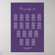 Help your guests find their table with this modern purple seating chart. It is suitable for a wedding with 17 tables and 170 guests.