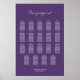 Help your guests find their table with this modern purple seating chart. It is suitable for a wedding with 19 tables and 190 guests.