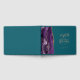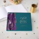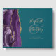 This elegant wedding guest book features a purple watercolor agate design trimmed with faux gold glitter. Easily customise the gold-coloured text on a teal blue background, with the names of the bride and groom in whimsical handwriting calligraphy over a large ampersand. Add additional text of your choice to the front and spine.