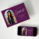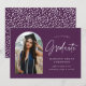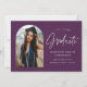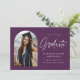 Trendy graduation announcement featuring the graduate's photo framed by a purple arch with "Graduate" in a white handwritten script. Personalise the front of the arch graduation announcement card by adding the graduate's name, graduation year, school name, and future plans. The photo graduation announcement reverses to display a purple and white dotted pattern. The announcement is suitable for both high school and college graduates.