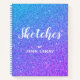 Keep your art in this Modern Girly Purple Blue Glitter Name Script Sketchbook Notebook. Click personalise option and follow the prompt to view your very own personalised sketchbook. Both sides are designed with purple and blue ombre faux glitter background. The front has "sketches" in classy white modern script lettering followed by personalised name in small black frame. Makes a great gift idea for someone who loves sketching.