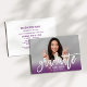 Celebrate your grad with a modern graduation party invitation featuring a full-bleed photo, bold white brush-script “graduate,” and a fresh purple colour-block fade. Clean, minimal personalisation highlights the name and class year without clutter. The back includes a coordinating white layout with matching purple headline text for your party details. Easy to customise.