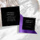 Modern, trendy design features simple white lettering in a black square, against a dramatic background of white marble and amethyst purple faux brushed metal foil. Add your contact information on the reverse in white sans serif font on a solid black background.