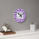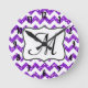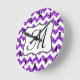 Modern Purple Glitter Chevron Zig Zag Stripe Fabric Print Pattern Monogram Initial Wall Clock Personalised