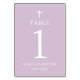 Modern Purple Cross Girl Baptism Table Number Card