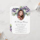 Elegant purple floral photo memorial service/celebration of life/funeral/in loving memory invitation featuring a photo with purple and white flowers and greenery.