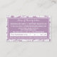 Remind clients about their upcoming hair appointment with this modern girly light purple and white floral salon appointment reminder business cards. Personalise by adding the name of the certified beautician and appointment information to this pretty lavender purple flowers design. All text in this business card template can be customised with your occupation or business of choice.