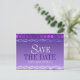 Funky modern dance & disco lights inspired design in shades of purple and blue wedding or engagement announcement save the date postcards. Affordable wedding and engagement cards without compromising on style and design.