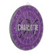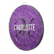 Modern purple glitter dart board with a white typography name and black monogram. Personalise with name and initial.