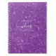 Modern notebook for your fabulous ideas with a purple glitter background featuring a white hand lettered script typography. Personalise with your name and text.