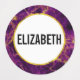 Personalised waterproof labels with a beautiful abstract pattern featuring a marble design. Rich purple colours blending together combined with faux-gold swirling ribbons of colour mixing and mingling throughout the design. A circle with a faux gold-foil border layered over top with your personalised text inside.